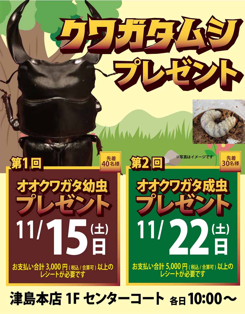 予告【津島本店】オオクワガタ幼虫プレゼント!