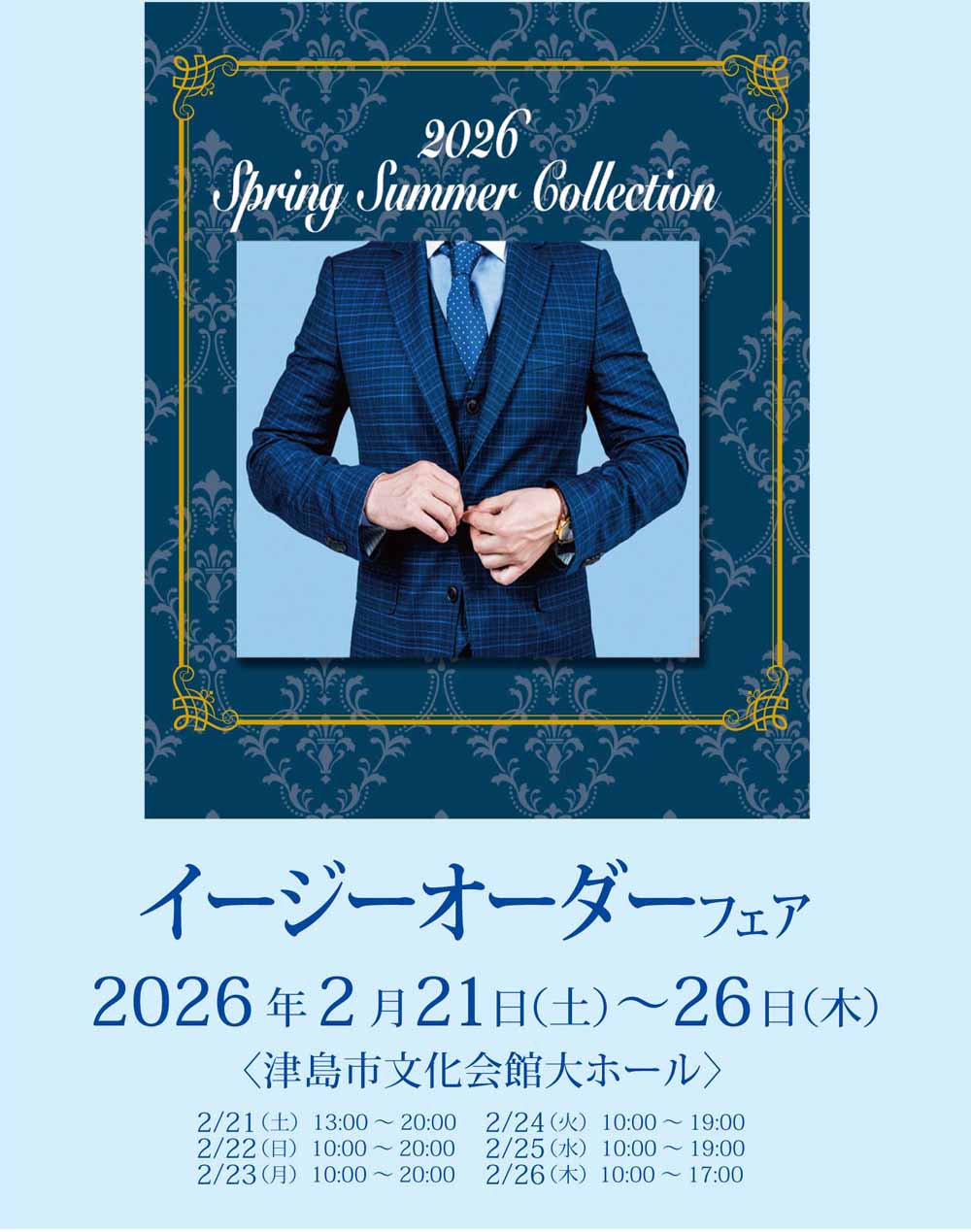 《特別催事》イージーオーダーフェア開催 2026-02-20 津島本店 津島北テラス 新稲沢店 JR蟹江駅前店 Yストア蟹江食品舘 弥富店 甚目寺店 師勝店 佐屋店 大口店 平和店 清洲店 名古屋名西店 太平通り店 豊山テラス 犬山店 海津平田店 可児店 スーパー・センター垂井 員弁店