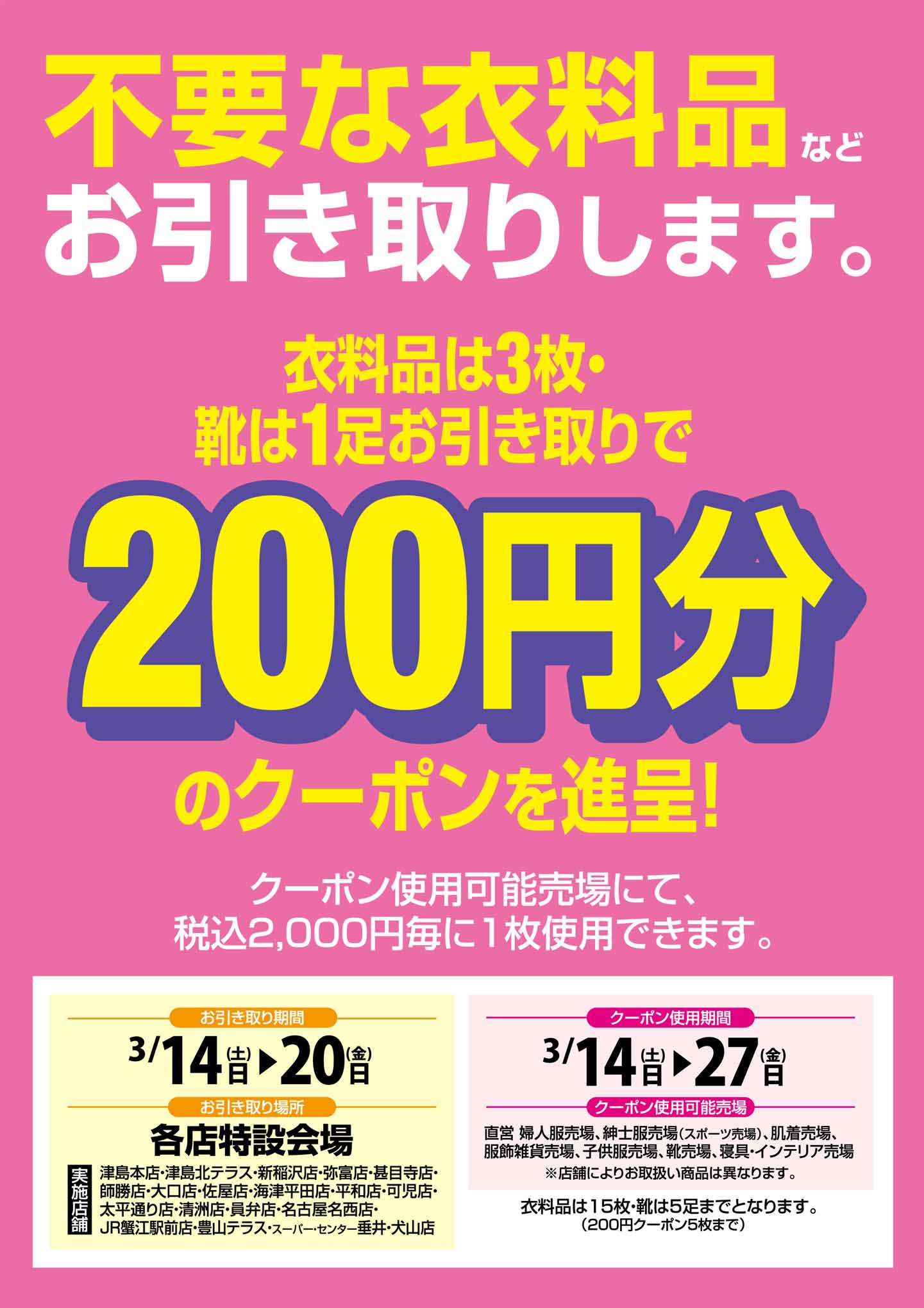 不要な衣料品等でお買物クーポンプレゼント!|ヨシヅヤ ~地元を、愛そう。~