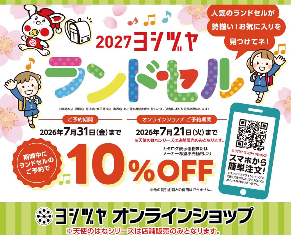 店舗からのお知らせ HOME 新着情報 店舗からのお知らせ 2027年ご入学用ランドセル販売開始 2027年ご入学用ランドセル販売開始 2026-04-02 津島本店 師勝店 清洲店 名古屋名西店 太平通り店 可児店