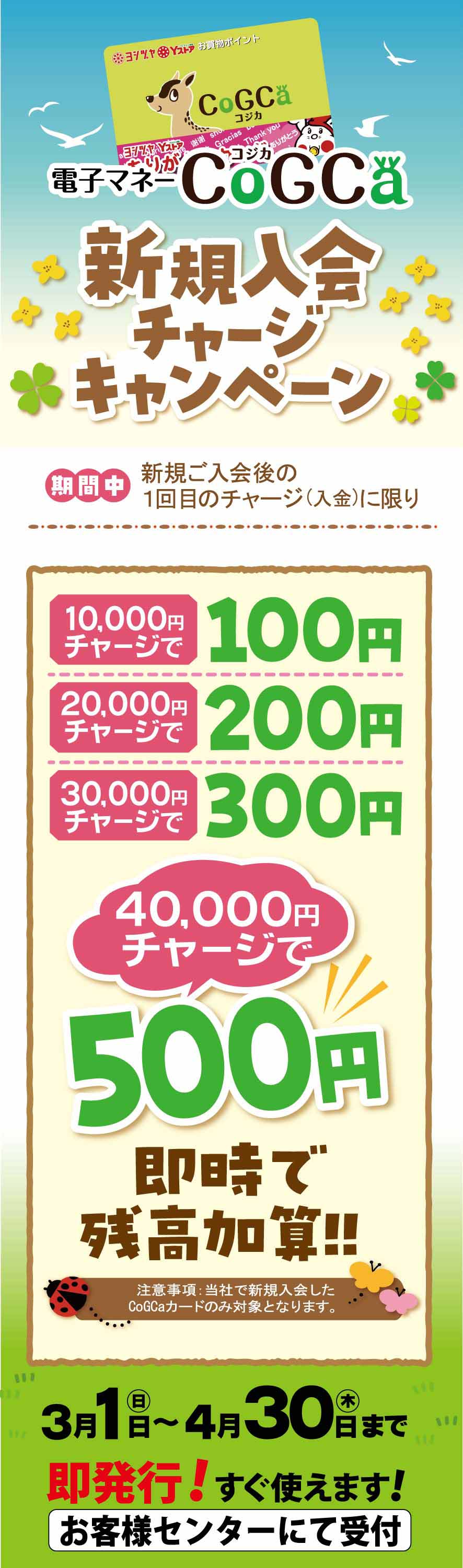 ヨシヅヤ コジカ新規入会チャージキャンペーン 202600301-0430|ヨシヅヤ ~地元を、愛そう。~