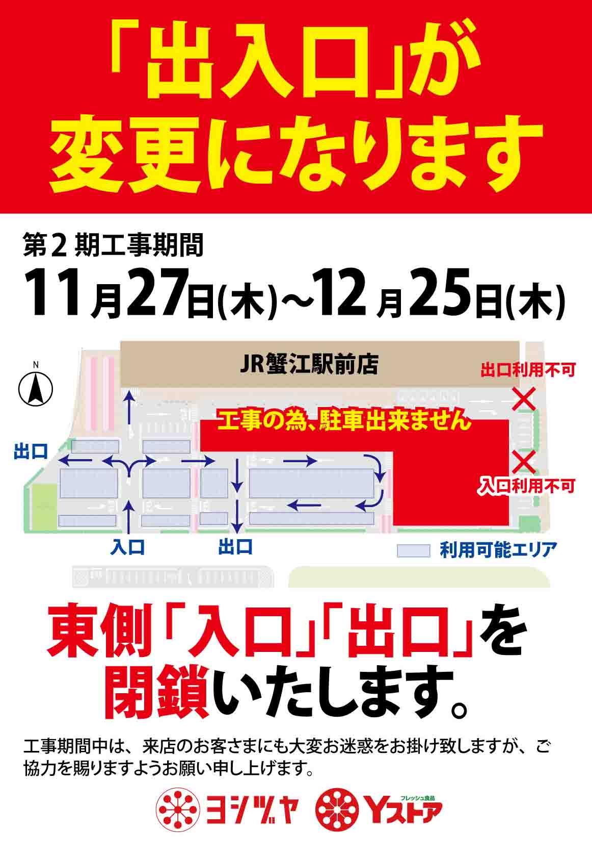 《JR蟹江駅前店》出入口が変更になります